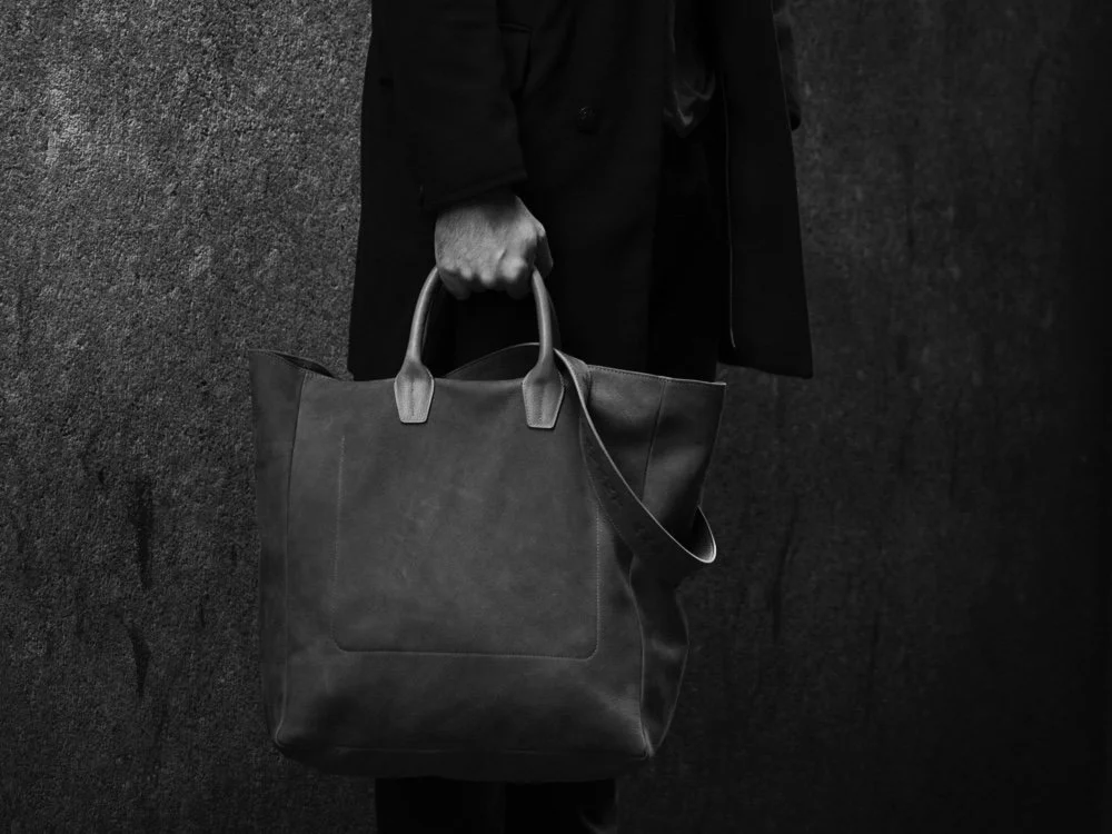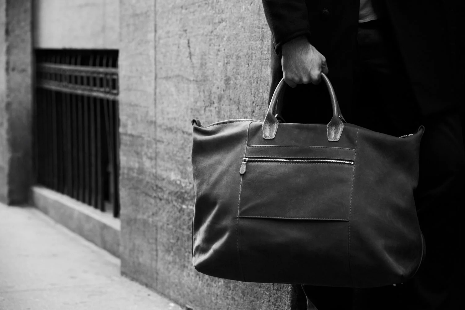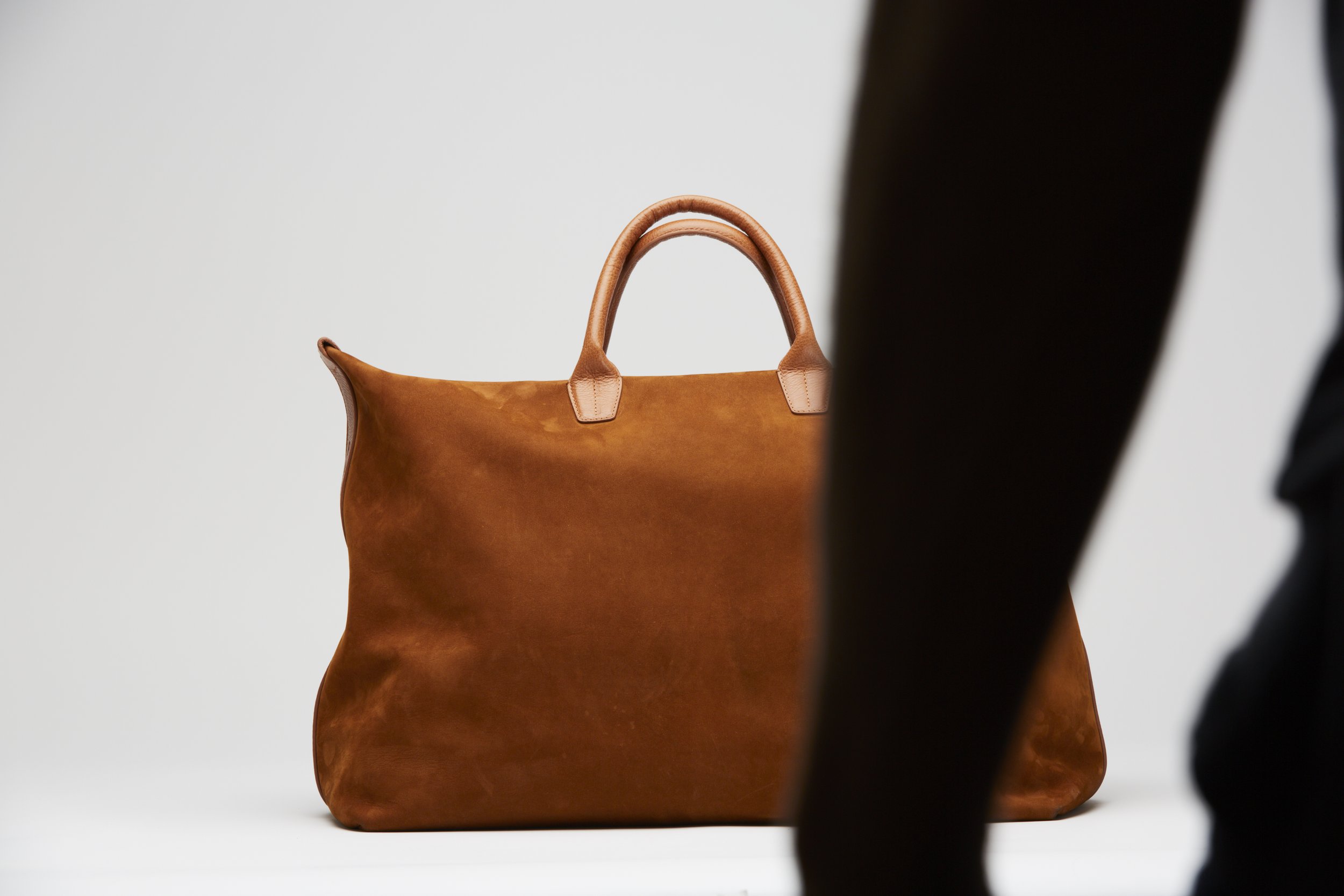 Bespoke Italian leather reinforced by discreetly visible aluminium shells, offering protection for laptop and devices